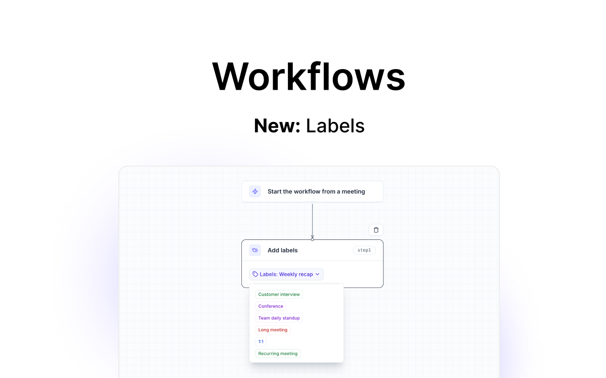 Labels can now be used in workflows to automatically distribute meeting insights to exact folders, files, and categories across your tech stack.